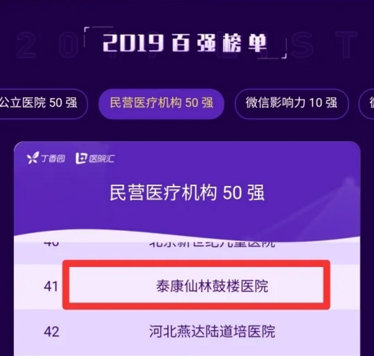 球盟会(中国)仙林鼓楼医院连读第二年入围中国民营医疗组织50强。