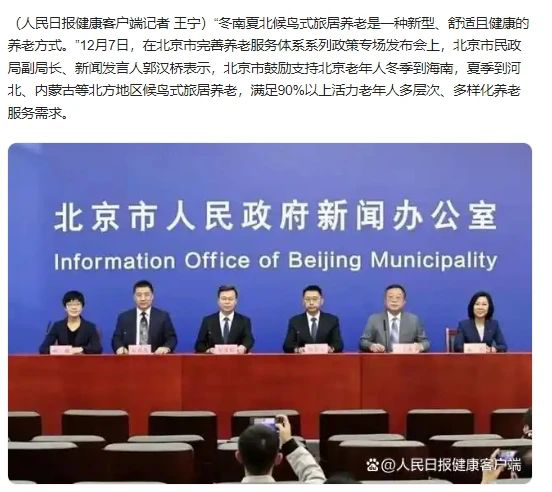 近年来,随着社会经济的开展和人们生活水平的提高,传统的养老模式已不能满足老年人日益增长的多样化、个性化和高品质的养老需求,而候鸟式旅居养老作为一种新兴的养老模式,正受到越来越多的老年人关注和青睐,从国家到地方也出台了各项政策予以鼓励和支持。今年初,中共中央、国务院印发的《关于深化养老服务改革开展的意见》中就明确指出,要大力开发旅居养老市场,因地制宜开展康养旅居等新业态。北京市《关于完善北京市养老服务体系的实施意见》中也提出,要有助于建立北京老年人“冬南夏北”候鸟式养老服务工作机制。